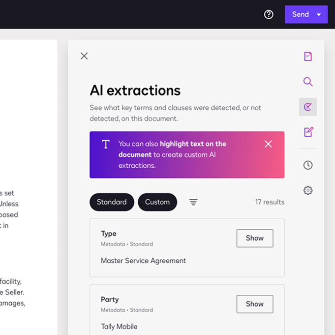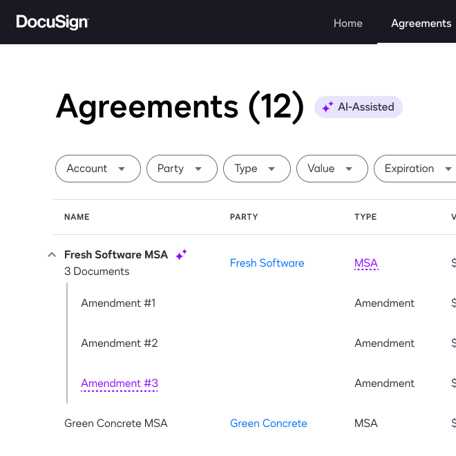 By transforming fragmented contract data into actionable insights, I worked side by side with another lead designer to define the UX foundation for DocuSign’s pivot into Intelligent Agreement Management (IAM), partnering directly with the VP and CTO to secure the vision for this flagship initiative.