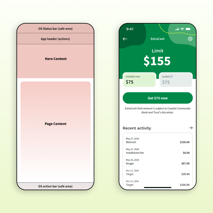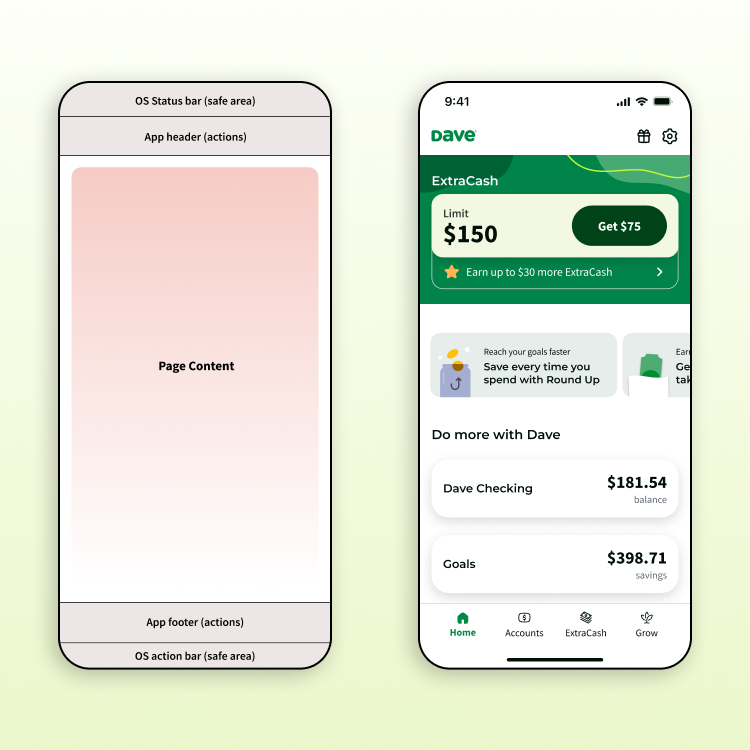 I spearheaded the Dave Navigation & Layouts Framework, a cross-functional guide designed to align teams on common patterns and flows. By documenting everything from navigational pathways to specific header behaviors, I provided a source of truth that eliminated design debt and streamlined the engineering handoff for the majority of our mobile use cases.